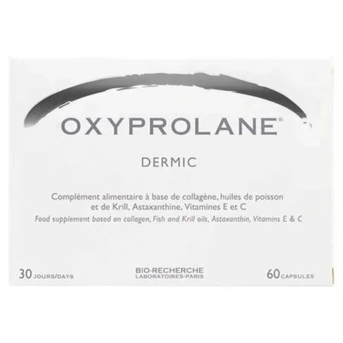 Oxyprolane Dermic é um suplemento nutricional, que estimula a síntese de colágeno, ácido hialurónico e elastina, fornecendo elementos essenciais e precursores na síntese destas proteínas e componentes epidérmicos, que determinam a renovação da derme e epiderme: micro peptídeos, extratos de carotenóides, fosfolipídios e ácidos gordos poli-insaturados.