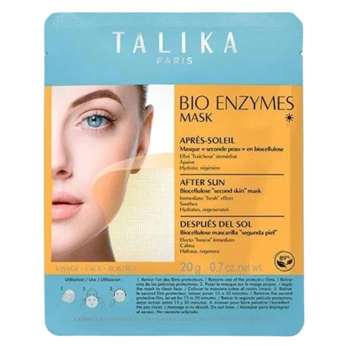 A Bio-enzymes máscara de tecido after-sun é indicada para apaziguar e refrescar a pele, após a exposição solar!