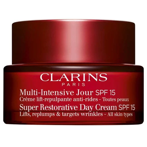 Super Restorative Day Cream All Skin Types reduces skin damage caused by age-related hormonal changes and the natural aging process, with sunscreen.