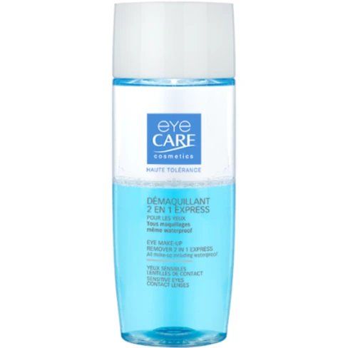 Discover the gentle power of Eye Care Cosmetics Eye Make-Up Remover 2 in 1 Express—perfect for sensitive eyes and contact lens wearers, even on waterproof make-up.