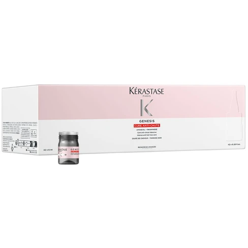 Revitalize your hair with Kérastase Genesis Intensive Anti-Hair Loss Care Ampoules. These powerful ampoules reduce hair fall, strengthen strands, and promote thicker, healthier, and more voluminous hair with visible results.