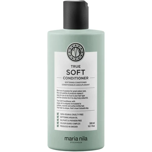 True Soft Conditioner, a luxurious formula designed to soften, revitalize, and tame frizz and static. Enriched with softening argan oil and a delicate flowery scent, it not only moisturizes but also strengthens and adds shine to your hair.