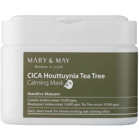 CICA Houttuynia Tea Tree Calming Mask is a daily soothing care mask pack that features a powerful blend of Centella Asiatica extract, Houttuynia Cordata extract, and Tea Tree extract known for their excellent anti-inflammatory and soothing effects, allowing for quick recovery and immediate relief.