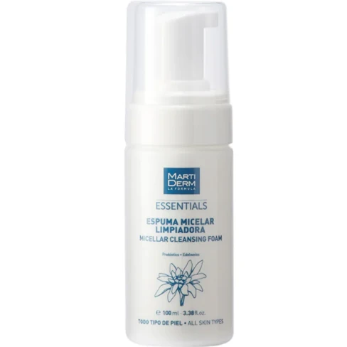 Discover Martiderm Essentials Micellar Cleansing Foam, the perfect daily cleanser that removes makeup, deeply cleanses, and hydrates while protecting the skin’s microbiota.